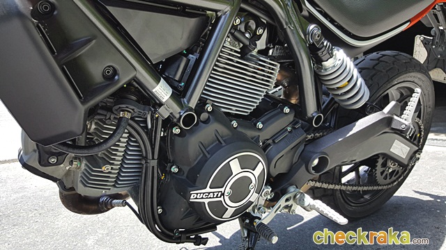 Ducati Scrambler Sixty2 อัตราเร่งตอบสนองแบบนุ่มนวลไม่กระชากจนเกินไป แต่กำลังจะดีมากในช่วงรอบประมาณ 3,000 รอบ/นาที ขึ้นไปจนถึงราวๆ 8,000 รอบ/นาที เกินกว่านี้จะเริ่มสะท้านเล็กน้อยแต่ก็ไม่สร้างความรำคาญมากนัก สามารถลากรอบไปได้อีกจนแตะ 10,000 รอบ/นาที พร้อมกับพลังเสียงที่ดุดันแบบนุ่มๆ ไม่ดังจนลั่นและคงความเป็นดูคาติไว้อย่างลงตัว