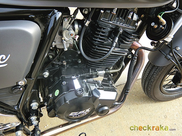 เครื่องยนต์สูบเดียวระบายความร้อนด้วยอากาศ พร้อมออลคูลเลอร์ ชุดท่อไอเสียสแตนเลสมันวาว ดิสก์เบรกคู่หน้าและดิสก์เบรกหลัง โช้กหน้าแบบหัวกลับ โช้กหลังคู่ของ YSS ยางแนวคลาสสิก เพียงแค่นี้ก็คุ้มแล้ว