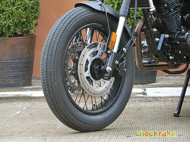 ระบบเบรกดิสก์หน้าคู่ ดิสก์หลังเดี่ยว ช่วงล่างด้านหน้าโช้กหัวกลับ ด้านหลังโช้กคู่จาก YSS ล้อซี่ลวด ยางหน้า 4 นิ้ว และยางหลัง 4.5 นิ้ว