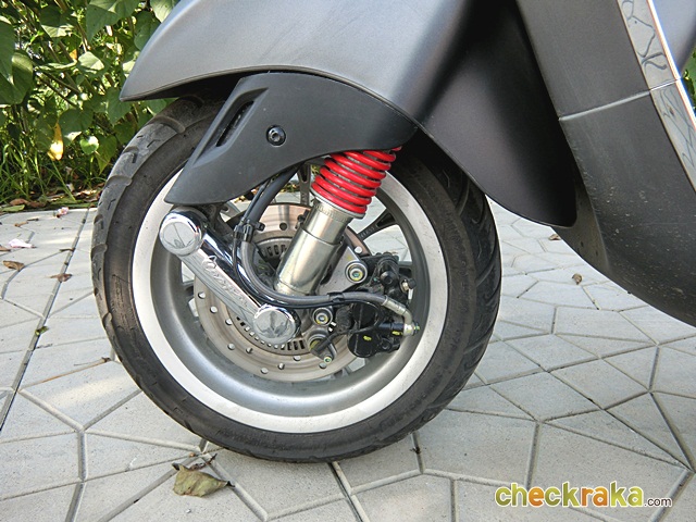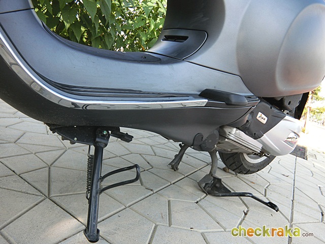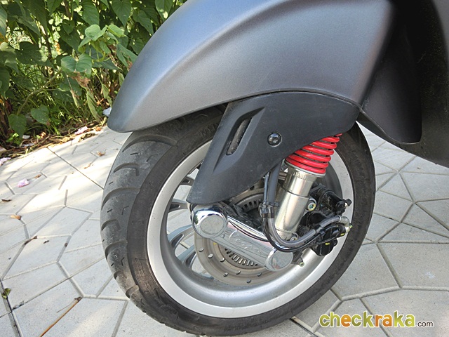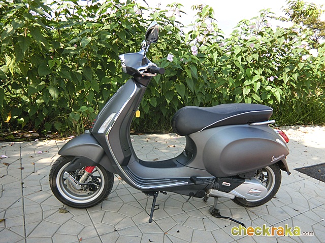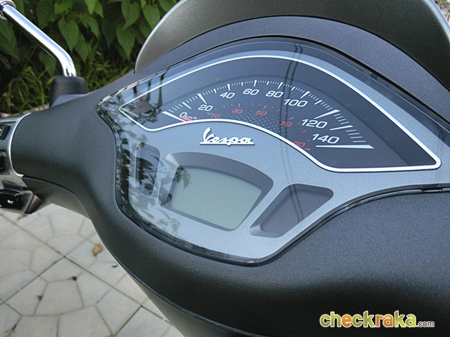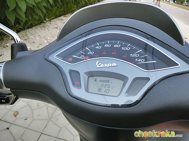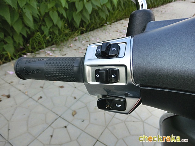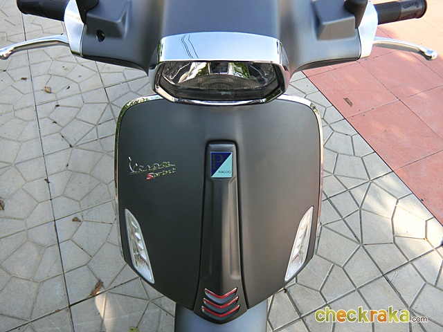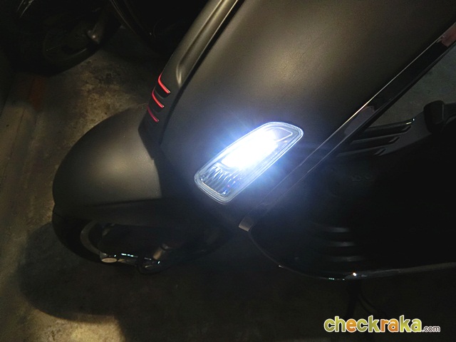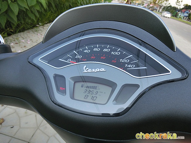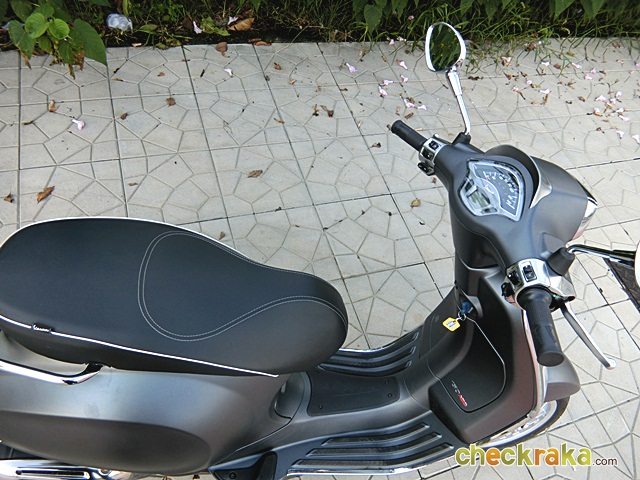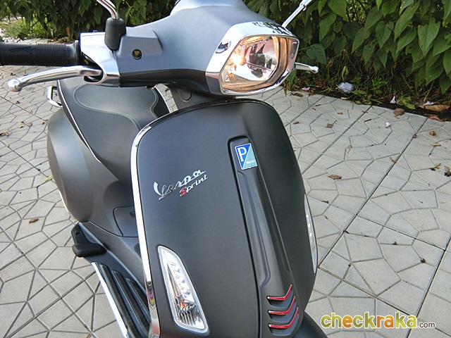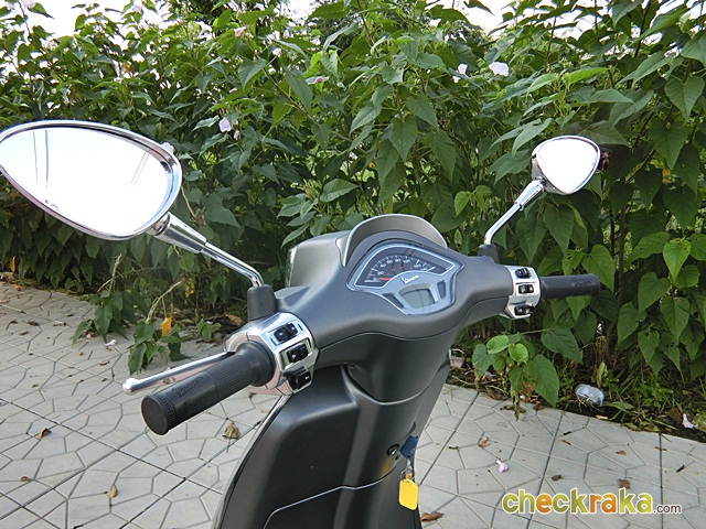 เวสป้า ความร่วมสมัยของรูปทรงที่คลาสสิก ผสมโทนสีที่ฉูดฉาดสะใจวัยรุ่น แม้รุ่นที่นำมาทดลองขับจะเป็นสีเทาด้านโทนเรียบง่าย แต่ก็มีเสน่ห์ในตัว ให้กลิ่นอายเวสป้ารุ่นแรกดั้งเดิมได้ไม่เสื่อมคลาย ไฟหน้าทรงสี่เหลี่ยมหลอดแบบฮาโลเจนสว่างชัดเจน พร้อมไฟ LED ส่องเวลากลางวัน ที่สามารถปิด-เปิดได้ กระจกมองข้างแบบโครเมี่ยม