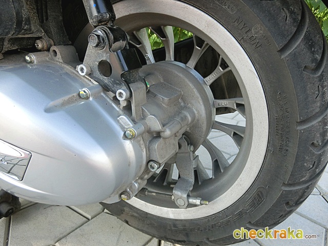 เบรกหลังดรัมเบรกได้พอตัว ระบบเบรกหลังเหมาะกับการลดความเร็วระดับกลางๆ แบบไม่กะทันหันนัก เพราะเป็นดรัม แต่ถ้าต้องการให้หยุดสนิทแค่เพียงออกแรงกำเบรกเพิ่มมากขึ้นก็สามารถที่จะหยุดรถได้ และหากใช้เบรกทั้งหน้าและหลังยิ่งมั่นใจขึ้นโดยเฉพาะระบบ ABS ที่ล้อหน้าเพิ่มความมั่นใจได้อีกด้วย