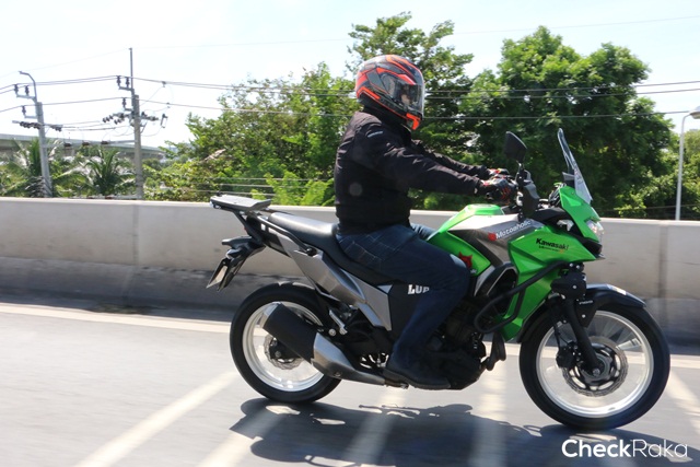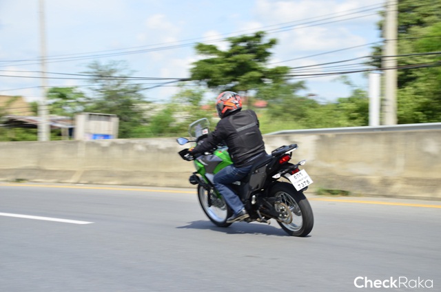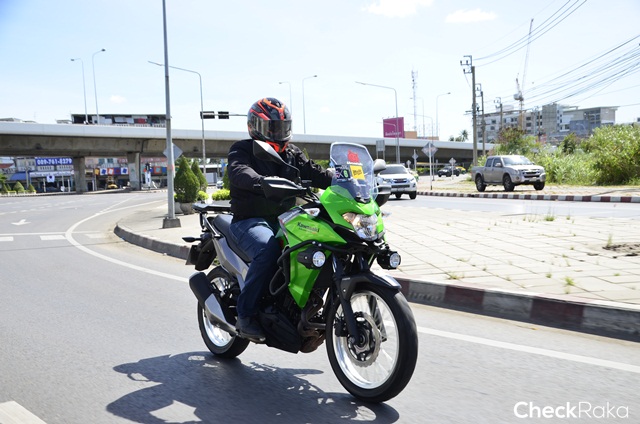 น้ำหนักของ Versys X300 นั้นเบามากๆ ครับ คล่องตัวทั้งการลัดเลาะในการจราจรติดขัด ความกว้างตัวรถที่ไม่เกะกะเกินไปขนาดกำลังดี ทำให้ไปได้แม้ช่องแคบๆ จะกลับรถ จอด เข็น หรือหลบหลีกง่ายมากจริงๆ