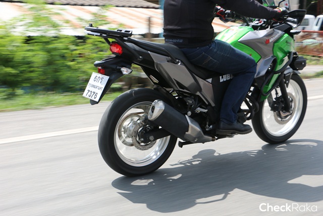 ตัวรถสูงแบบรถวิบากจากพื้นถึงใต้ท้อง 180 มม. วงล้อหน้าใหญ่กว่าล้อหลัง เบาะนั่งทรงเว้าต่ำความสูงเพียง 845 มม. ขี่ง่าย โดดเด่นด้วยท่านั่งขับที่ให้หลังตรง ระยะมือกับแฮนด์ลงตัวลดอาการเมื่อยล้าเมื่อขี่ทางไกลได้ดี