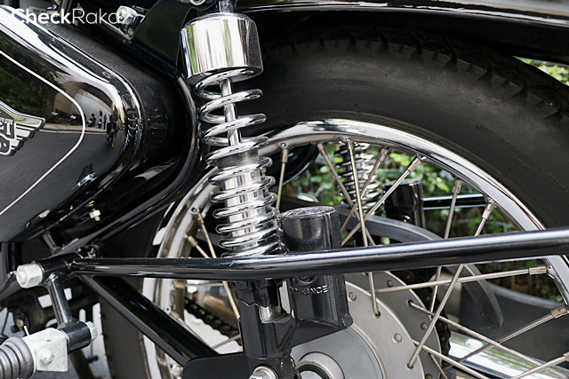 โช้กหน้าแบบเทเลสโคปิก ขนาด 35 มม. ระยะยืดตัว 130 มม. ส่วนด้านหลังเป็นโช้กอัพแก๊สกับสปริงพร้อมซับแทงค์ปรับได้ 5 ระดับ ระยะยืดตัว 80 มม. เบรกหน้าดิสก์เดี่ยวขนาด 280 มม. คาลิปเปอร์ 2 ลูกสูบ และเบรกหลังดรัมขนาด 153 มม. น้ำหนักตัว 194 กก. และความจุถังน้ำมัน 13.5 ลิตร