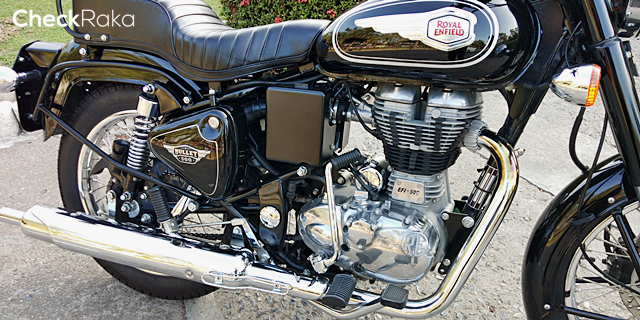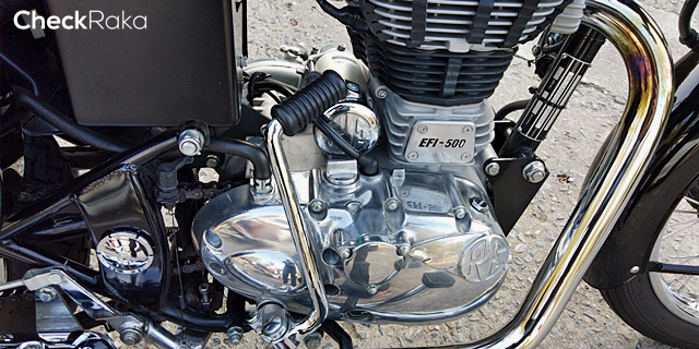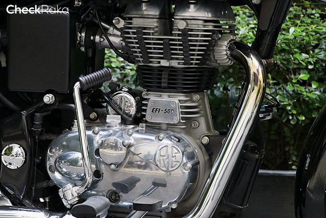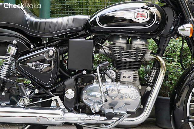 Royal Enfield Bullet 500 ใช้เครื่องยนต์ 1 สูบ ระบายความร้อนด้วยอากาศ ระบบหัวฉีด EFI 499 ซีซี มีอัตราส่วนการอัด 8.5 : 1 กำลังสูงสุด 27.2 แรงม้า ที่ 5,250 รอบ/นาที แรงบิด 41.3 นิวตันเมตร ที่ 4,000 รอบ/นาที เกียร์ 5 จังหวะ ขับเคลื่อนด้วยโซ่