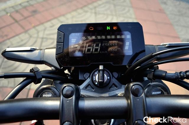 จอแสดงข้อมูลความเร็วและอื่นๆ แบบ LCD มองเห็นชัดเจน และมีไฟเตือนรอบเปลี่ยนเกียร์