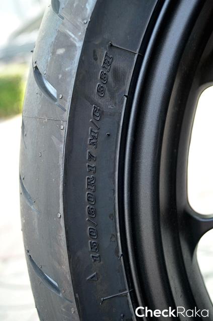 ยางหลังสเปค 150/60 แบบทูปเลส ให้ความมั่นใจเมื่อขี่แบบสปอร์ต