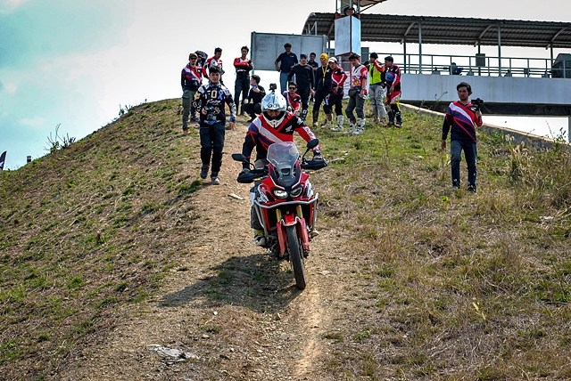 ช่วงนี้เหมือนได้ปลดปล่อยเพราะได้กลับมาวิ่งบนถนนปกติ ทำความเร็วกันได้มากขึ้น หลังจากพักเหนื่อยรับประทานอาหารกันเต็มที่ ก็ยังมีอีกจุดหมายรออยู่ในช่วงบ่าย ขบวนฯ ต้องขี่กันไปที่อ่างเก็บน้ำคลองพระสะทึง จังหวัดสระแก้ว ซึ่งมีความใหญ่โต และสวยงาม ที่นี่ทีมงานได้เตรียมฝึกการกลับและหยุดรถ บิ๊กไบค์ กลางทางลาดชันบนทางดิน โดยใช้รถรุ่น NC750X เกียร์แมนนวล นับเป็นทักษะที่สำคัญในการเรียนรู้สำหรับสายแอดเวนเจอร์อย่างแท้จริง และทุกคนก็ได้ลองจนมั่นใจว่าเจอสถานการณ์แบบนี้เอาตัวรอดได้แน่ หลังจากนั้นก็ได้เวลาเดินทางกลับกรุงเทพฯ เป้าหมายสุดท้ายคือ ฮอนด้า บิ๊กวิงก์ สาขาถนนประดิษฐมนูธรรม ช่วงเดินทางกลับได้ใช้ทล.3259 ขี่ผ่านเขตรักษาพันธุ์สัตว์ป่าอ่างฤาไน แล้วต่อเนื่องไปยัง อ.ท่าตะเกียบ สนามชัยเขต พนมสารคาม เข้าสู่ตัวเมืองฉะเชิงเทรารับประทานอาหารเย็นกันอีกครั้งก่อนขี่กลับแบบฟรีรัน พร้อมถึงที่หมายกันโดยสวัสดิภาพทุกคน และเตรียมไปออกตะลุยพร้อมกันอีกครั้งในเดือนเมษายนที่ประเทศนิวซีแลนด์