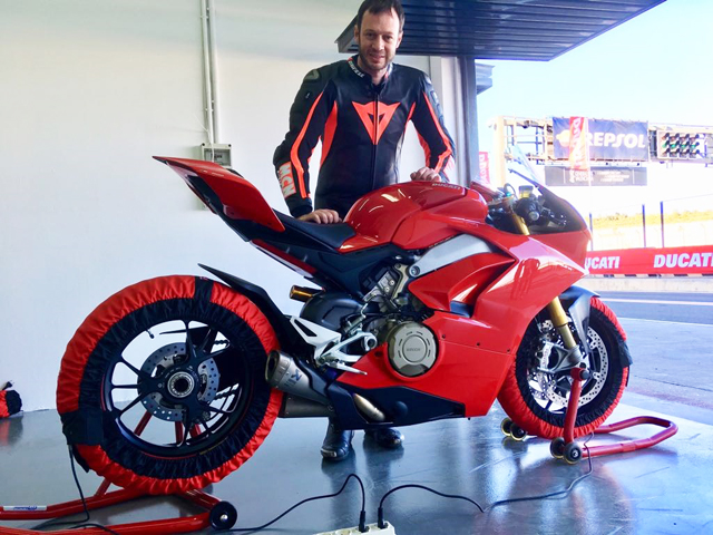 "แชสซีส์ก็สุดยอดด้วยเช่นกัน เหมือนกับมอเตอร์ไซค์ที่ใช้แข่ง Moto GP เลย Ducati ใช้ข้อเหวี่ยงแบบหมุนกลับสำหรับ V4 ซึ่งหมายความว่ามันจะหมุนในทิศทางตรงกันข้ามกับล้อเพื่อต้านแรงไจโร มันหมายความว่ามอเตอร์ไซค์คล่องแคล่วและบังคับง่าย ซึ่งผมก็ตั้งตารอที่จะได้ทดลองขี่มันอีกในครั้งหน้า"