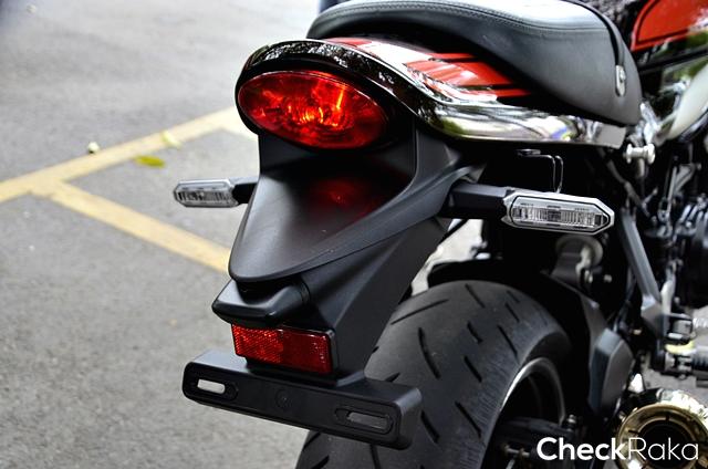 โดยรวม Z900RS ไม่ได้ออกแบบให้ดูเรโทรจ๋า แต่เป็นความร่วมสมัยที่ลงตัวกับสไตล์ยุคใหม่ บางจุดก็ดูล้ำเกิน เช่น บังโคลนหน้าและชิ้นงานพลาสติกสีเงินใต้ถังน้ำมันทั้ง 2 ฝั่ง ดูโดดไม่ค่อยเข้าพวกเท่าไหร่