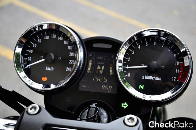 รูปลักษณ์ของ คาวาซากิ Z900RS แค่เห็นก็รู้แล้วว่าสวยงามแค่ไหน คงไม่ต้องบรรยายให้มากความ ที่โดดเด่นออกมาก็ ถังน้ำมัน นี่ล่ะ มันดูเออ... ใหญ่เกินตัว โอบได้แน่นเลย ส่วนล้อน่าจะเป็นแบบซี่ลวดจะช่วยสะท้อนความเป็นเรโทรยุคพ่อได้ไม่น้อย ส่วนรายละเอียดคุณภาพการประกอบ งานสี จัดว่าเนี้ยบทำได้ดี ดูคลาสสิก แต่เอมเบลม Kawasaki ที่ติดไปบนถังน้ำมันยังขัดใจอยู่บ้าง เพราะมันดูไม่กลมกลืนเท่าไหร่ ไฟหน้าทรงกลมแต่ทันสมัยด้วยระบบส่องสว่างแบบ LED พร้อม DRL เหมือนรถเรโทรไฟกลมต้องมาแนวนี้กันหมด เครื่องยนต์มีครีบระบายความร้อนที่ช่วยเสริมความคลาสิก ด้านงานท่อทำได้สวยมากทั้งรอยเชื่อมและการปัดเงา ส่วนมุมมองจากตำแหน่งผู้ขี่ มีเกจวัดความเร็วและรอบการทำงานแบบอนาล็อก 2 ตัวแบ่งซ้าย-ขวา พร้อมจอแสดงข้อมูลการขี่ เช่น ตำแหน่งเกียร์อยู่ระหว่างกลาง จริงๆ ผู้เขียนอยากให้เกจออกแบบดูทันสมัยกว่านี้ไม่ต้องเรโทรไปซะทั้งหมด ตัวเลขด้านในดูเล็กไปหน่อย และน่าออกแบบให้มีลูกเล่นมากกว่านี้ (อย่าง XSR900)