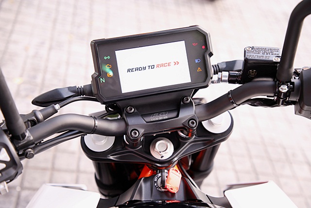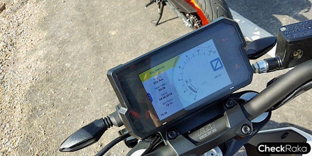 หน้าจอที่มีระบบปรับความสว่างอัตโนมัติ ในเวลากลางวันพื้นจอเป็นสีขาว เมื่อขับขี่ในที่แสงน้อยหรือกลางคืนพื้นจอจะเป็นสีดำ เพื่อให้มองง่าย นอกจากนี้ยังมีลูกเล่นอีกเพียบ เช่น เลือกโหมดการขับขี่ Off - ปิดระบบ ABS, ปกติ และ Supermoto ปิด ABS เฉพาะล้อหลัง เพื่อให้สไลด์เข้าโค้งได้อย่างสนุก