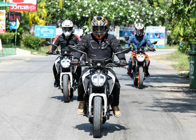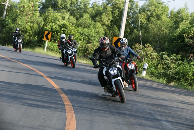 KTM NEW 390 DUKE เป็นการสลับขี่ 2 กลุ่มคือจากกรุงเทพฯ - ชะอำ จังหวัดเพชรบุรี โดยทีมงานเช็คราคา.คอมได้ทดลองขี่ในช่วงเดินทางกลับจากอ.ชะอำสู่กรุงเทพฯ ด้วยเส้นทางคลองโคน เพื่อเล่นโค้ง ต่อเนื่องถนนพระราม 2 ยาวไปจนถึงเพชรเกษม และข้ามสะพานกรุงเทพฯ สู่ถนนพระรามที่ 3 พระรามที่ 4 กลับสู่โชว์รูม KTM Flagship Bangkok โครงการ เอ สแควร์ สุขุมวิท 26