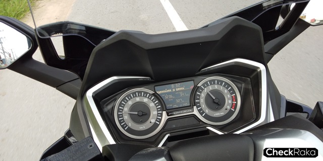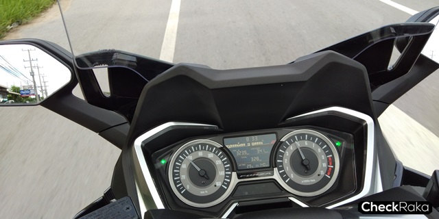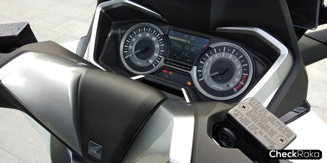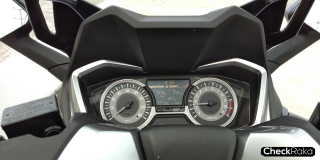 จุดเด่นต่อมาคือ มาตรวัดแบบอนาล็อคทรงกลม พร้อมจอแสดงผลตรวกลาง บอกข้อมูลครบๆ เช่น ระบบน้ำมัน, ความร้อน, ระยะทาง (ทริป A/B), ระยะทางที่วิ่งได้จากน้ำมันในถัง, แจ้งเตือนการบำรุงรักษา, คำนวณอัตราการสิ้นเปลืองน้ำมัน, แสดงอุณหภูมิภายนอก และไฟเตือนสถานะการทำงานต่างๆ