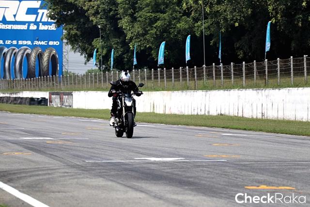 ช่วงบ่ายหลังพักเป็นการเปิดให้ขี่แบบเต็มรอบ สามารถใช้ความเร็วกันได้เต็มที่ เพื่อสัมผัสถึงสมรรถนะของตัวรถ ผมมีโอกาสได้ขี่ทั้ง 2 รุ่นย่อยหลายรอบ พอสรุปได้ว่า ด้านสมรรถนะแทบไม่มีความแตกต่าง เพราะเครื่องยนต์และระบบต่างๆ เหมือนกัน แม้น้ำหนักต่างกันอยู่ 1 กก. ซึ่งไม่มีผลมากนัก โดยเฉพาะในการใช้งานทั่วไปบนถนนสาธารณะ การขี่เต็มรอบทำให้เห็นถึงสมรรถนะรถอย่างเต็มที่เพราะการเร่ง เข้าโค้งชะลอเบรก ความมั่นคงของตัวรถ ทำได้ดีเกินที่คาดหมายไว้มาก แม้เป็นการขับแบบสปอร์ตในสนามแข่งที่เน้นลากรอบสูง และลดเกียร์เพื่อเข้าโค้งด้วยความเร็วบ่อยครั้ง และการขี่อยู่หลายรอบก็พบกว่าตัวรถยังให้การตอบสนองดีไม่มีตก หรือออกอาการให้กังวล