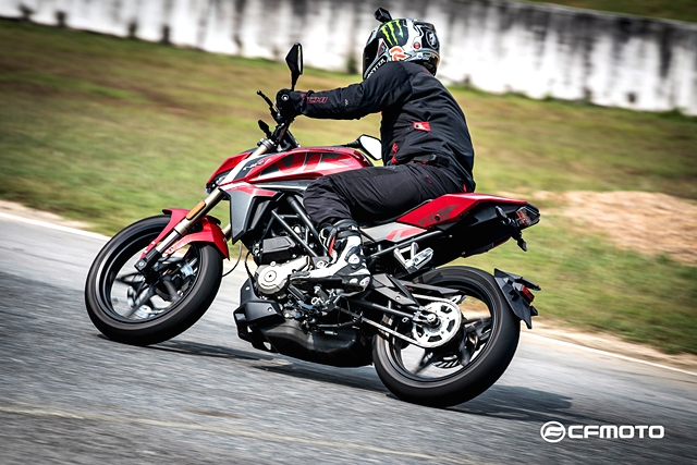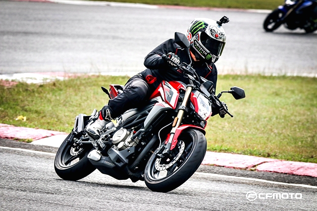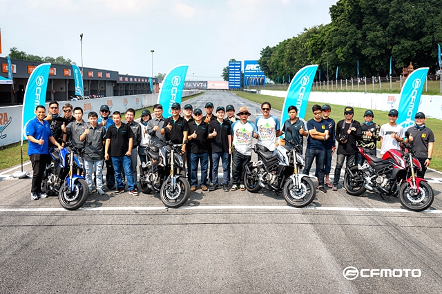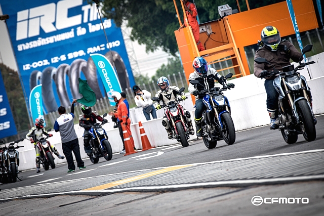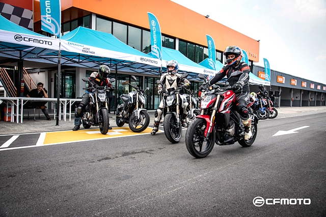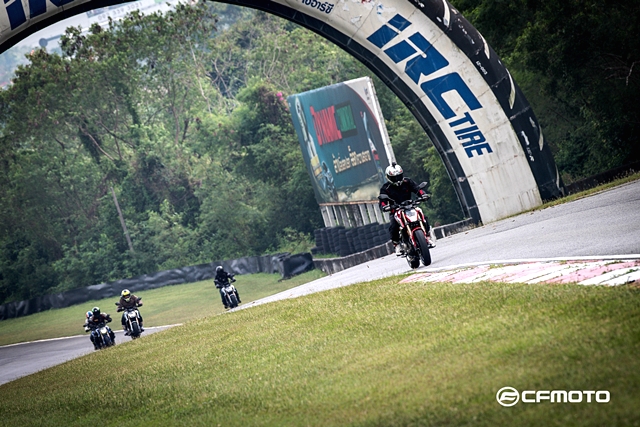 มอเตอร์ เอ็กซ์โป 2018 การทดสอบทาง CFMOTO ได้นำรถทั้ง 2 รุ่นย่อยมาให้สื่อมวลชนได้ลองสลับขี่กันอย่างเต็มที่ โดยแบ่งเป็น 2 ช่วง เริ่มจากการขี่รอบสนามหยุดตามสเตชั่น ซึ่งแบ่งไว้ทั้งหมด 4 จุด เริ่มจากออกตัวด้านหน้ากริดสตาร์ท ออกตัวผ่านไปหยุดหลังออกจากโค้งที่ 3 เพื่อเข้าสู่สถานีสลาลอม ดูความคล่องตัวและการควบคุมตัวรถผ่านกรวย จากนั้นต่อด้วยโค้งยาวๆ ที่ทำความเร็วได้เต็มที่ โดยวิ่งผ่านโค้ง 4 และ 5 แล้วไปหยุดเพื่อลองระบบเบรกก่อนออกตัวสู่เข้าโค้งต่อไป จากนั้นเป็นการทดสอบการเข้าโค้งเอส โดยเร่งผ่านโค้ง 6-7 และ 8-9 อย่างต่อเนื่อง ก่อนเจอโค้ง 10 ที่ท้าทายการควบคุมของตัวรถ และหยุดที่จุดสุดท้ายก่อนเข้าโค้ง 11 เพื่อทดสอบอัตราเร่งในช่วงทางตรงยาว ก่อนหยุดหน้ากริดเพื่อชะลอความเร็ว แล้วเข้าสู่รอบต่อไป