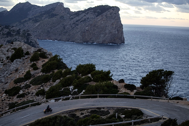 อย่างไรก็ตามด้วยอุณหภูมิราว 10 กว่าองศา เมื่อขี่แล้วโดนลมปะทะตัวตลอดเวลา เสื้อแจ็คเก็ตแบบแอร์โฟลว์ของเมืองร้อนก็กลายเป็นตัวนำความเย็นผ่านอินเนอร์กระแทกร่างตลอดเวลา นับเป็นความทรมานที่รบกวนการขี่ไม่น้อย และเป็นการประเมินสถานการณ์ที่ผิดพลาดของผู้เขียน แม้ตัวรถมีฮีทกริ๊ปและใส่ถุงมือขี่แบบวินเตอร์พร้อมปรับความร้อนสูงสุด แต่ก็ไม่ได้ช่วยในช่วงตัวที่ปะทะลมหนักมาก ยิ่งตัวรถเป็นแบบ naked จุดแรกที่ทีมมาแวะทานกาแฟร้อนก่อนที่จะขี่ไปเผชิญความโหดของเส้นทางเขาเป็นร้านกาแฟชื่อ Eu monument ในเมือง Pollenca ซึ่งที่ผ่านมาเป็นทางเรียบตลอด