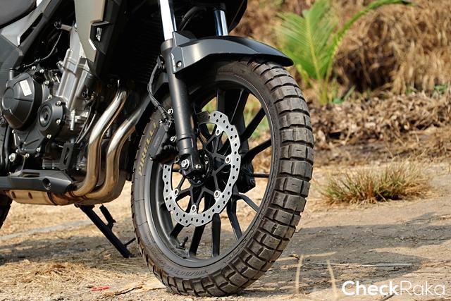 ระบบเบรกด้านหน้าใช้จานใหญ่ขนาด 320 มม. พร้อม ABS เพียงพอต่อการชะลอหยุดน้ำหนัก 198 กก. ได้อย่างมั่นใจ