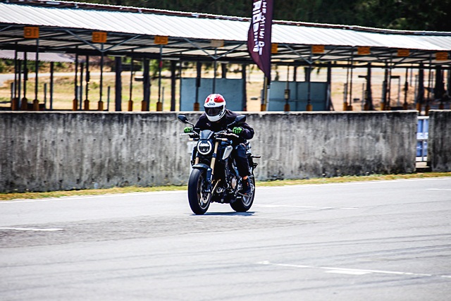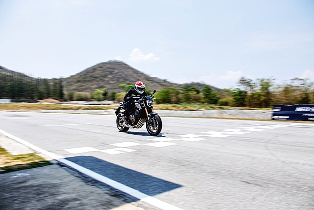 CB1000R สัมผัสแรกคือ เครื่องยนต์แรงตอบสนองดี เมื่อใช้งานโหมด Sport ยิ่งขับขี่สนุกบิดติดมือ แต่เมื่อเปิดคันเร่งลากรอบยาวๆ นั้น จะรู้สึกว่าหน้าลอยขึ้นพอสมควร และส่วนท้ายที่ยุบตัวลงเล็กน้อย ทำให้ต้องใช้สมาธิและใช้แรงในการควบคุมแฮนด์ให้นิ่งมากขึ้น เพราะมีอาการส่ายอยู่บ้าง เนื่องจากอัตราเร่งที่มาไว้มากบวกกับช่วงล่างที่ปรับตั้งมาแบบเดิมๆ ที่เน้นการใช้งานบนถนนทั่วไป จึงค่อนข้างจะนุ่มนวลไปเมื่อลงแทร็ค