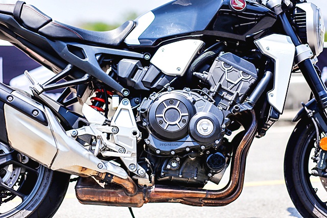 พลังจากเครื่องยนต์ 1000 ซีซี เริ่มจากการออกตัวที่แถบไม่ต้องบิดคันเร่ง เพียงค่อยๆ ปล่อยคลัตช์รถก็ลอยตัวออกไปได้ ในช่วงเกียร์ 1 ไปถึง 3 นั้น สั้นคล้ายๆ รุ่น CB650R แต่ช่วงเกียร์ 4 ขึ้นไป จะรู้สึกเริ่มมีระยะห่างของอัตราทดมาขึ้นเรื่อยๆ โดยรอบเครื่องยนต์ก็ยังสูงๆ คล้าย CB650R เช่นกัน แต่แรงบิดมาเร็วกว่าแม้จะรอบเครื่องเพียง 2,500 รอบต่อนาที เมื่อเปิดคันเร่งเครื่องยนต์พร้อมตอบสนองทันที ซึ่งการตอบสนองของคันเร่งไฟฟ้าฉับไวมากๆ