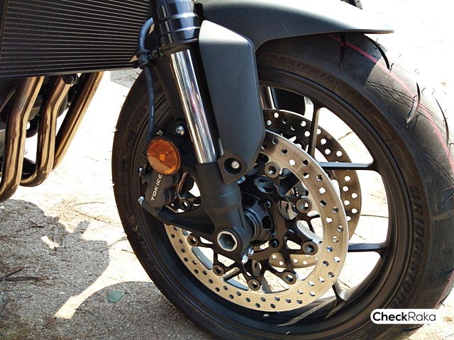 ระบบเบรคยิ่งไว้ใจได้ทั้งความเร็วต่ำและสูง โดยระบบ ABS ที่ล้อหลังนั้นทำงานได้ฉับไวมาก ส่วนเบรคหน้านั้นนับว่าช่วยได้เยอะ เพราะนอกจากจะหยุดได้อย่างมั่นใจแล้ว ยังไม่มีอาการล้อล็อคจน ABS ทำงานอีกด้วย