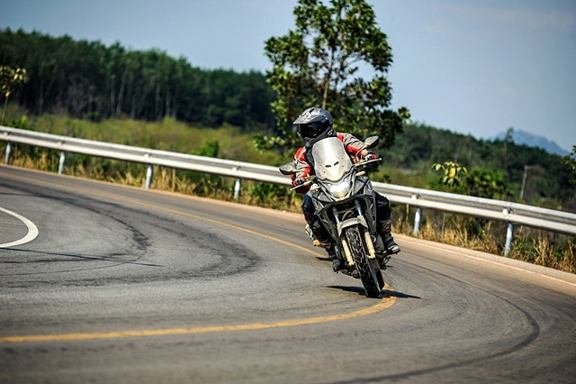 เราเดินทางกันในสายใช้ถนนรามอินทรามุ่งไปทางมีนบุรี ฝ่าการจราจรอันคับคั่งในช่วงตัวเมือง ซึ่ง 500X ก็ตอบสนองการขี่ผ่านช่องทางต่างๆ บนถนนได้เป็นอย่างดี พร้อมให้อัตราเร่งและชะลอเบรกได้อย่างน่าพอใจ เมื่อมาถึงช่วงสุวินทวงศ์ที่ถนนอยู่ในระหว่างการก่อสร้าง การจราจรติดขัดจากการถูกบีบเหลือเลนเดียวหลายช่วง และด้านข้างมักเป็นทางดินมีทรายลงไว้รอเทคอนกรีต ก็เลยเลือกลงไปวิ่งประหยัดเวลา นับเป็นข้อดีของแอดเวนเจอร์ไบค์ โดยเฉพาะจากฮอนด้า บิ๊กไบค์ ที่มีราคาเข้าถึงง่าย