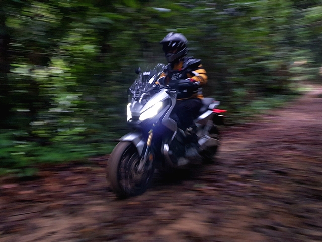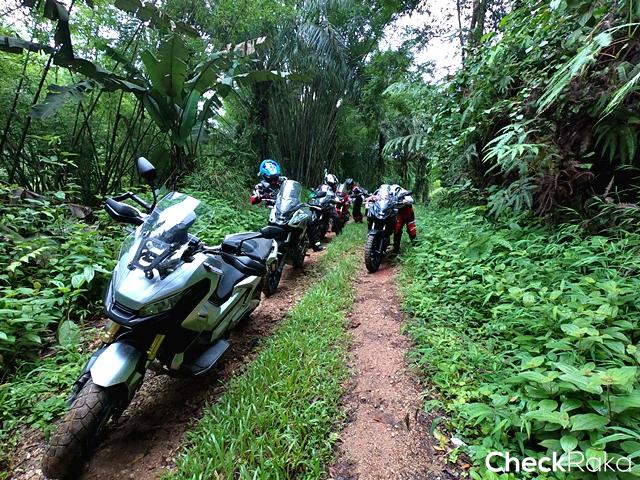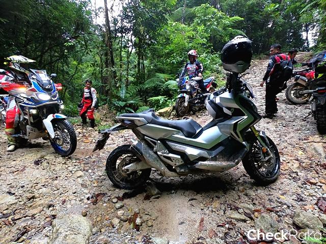 ฮอนด้า X-ADV ด้วยรูปแบบตัวรถแบบสกู๊ตเตอร์ทำให้ผู้เขียนต้องนั่งขี่เกือบตลอดเวลา นับเป็นข้อจำกัดจุดหนึ่ง ก้นเริ่มปวดบ้างจากการโดนกระแทกตลอดทาง อย่างไรก็ดีด้วยยางเดิม X-ADV ที่ลุยมาได้ขนาดนี้ก็นับว่าเกินความคาดหมาย และด้วยแรงบิดที่ดีทำให้ผ่านทุกอุปสรรคมาได้อย่างสบาย แต่ก็ต้องเลือกไลน์ขี่อย่างระมัดระวัง เพราะระยะห่างใต้ท้องรถมีไม่มาก จริงๆ ก็มีกระแทกหลายจังหวะจนกลัวรถพัง! ส่วนอาการสไลด์ที่ล้อหลังเวลาเจอทางลื่นมาก ก็เป็นเรื่องปกติของยางเดิมกับเส้นทางแบบนี้