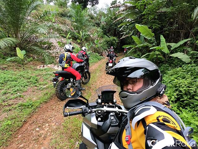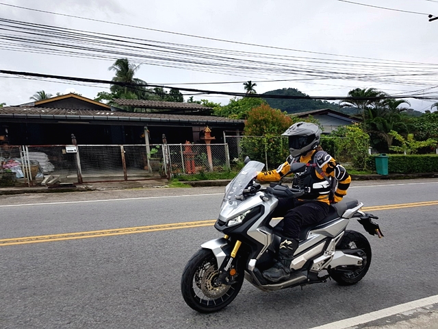 ช่วงบ่าย อากาศดี ท้องฟ้าสดใส การเดินทางมาขี่ภาคใต้ช่วงนี้ย่อมกลัวกับการเจอฝน ซึ่งนั่นจะทำให้การเดินทางออฟโรดเต็มไปด้วยความยากลำบากมากขึ้น ช่วงแรกๆ เส้นทางยังเป็นกรวดลอยขนาดเล็กขี่สนุกเพลิน ตัวรถ X-ADV มีอาการสไลด์บ้างในบางจังหวะที่เป็นโค้งหรือเปิดคันเร่งหนักไป แต่ก็ควบคุมแก้อาการไม่ยาก ขบวนฯ ขี่มาเจอทางคอนกรีตสลับไปสักพัก ชวนให้คิดว่าน่าจะขี่แบบสบายๆ ได้ไม่นาน