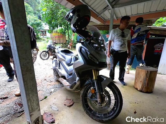 ฮอนด้า X-ADV จอดอยู่ 2 คัน สำหรับทีมงานและสื่อมวลชน ซึ่งครั้งนี้ทางเราได้เลือกที่จะลองสกู๊ตเตอร์อย่าง X-ADV หลังจากเคยนำมาทดสอบขี่บนทางดำและออฟโรดนิดหน่อย