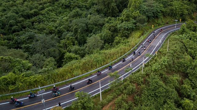และชื่นชมความสวยงามของธรรมชาติ ผ่านเส้นทางวิถีชุมชนบางน้ำผึ้ง ลัดเลาะชมความสวยงามของเส้นทางบางขุนเทียนชายทะเล เพื่อออกสู่ถนนธนบุรี-ปากท่อ แวะพักทานอาหารแสนอร่อยที่อินเลญารีสอร์ท ก่อนเข้าสู่อำเภอสวนผึ้งเพื่อสัมผัสกับธรรมชาติที่แสนบริสุทธิ์ด้วยรถจักรยานยนต์กลุ่มออโตเมติกจากยามาฮ่า