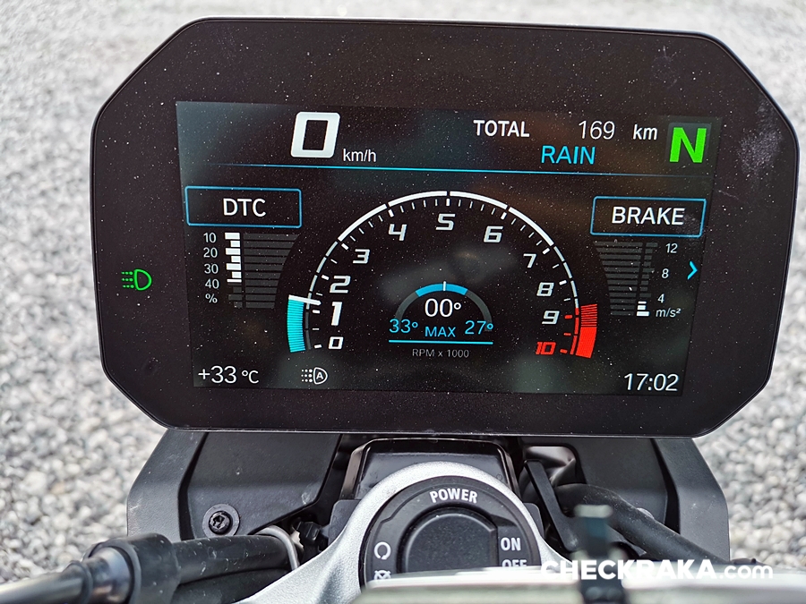 ช่วงที่ต้องเทโค้งและออกจากโค้งเมื่อผ่านผิวถนนลื่น รู้สึกได้ถึงระบบ Dynamic Traction Control (DTC) ป้องกันการลื่นไถลของล้อหลังและการยกตัวของล้อหน้าในจังหวะเปิดคันเร่งแบบทันที่ ช่วยตัดกำลังและควบคุมไม่ให้ล้อลื่นไถล ทำให้ควบคุมรถได้ง่าย และเมื่อผิวยางสัมผัสถนนดีขึ้นระบบก็จะปล่อยให้เร่งขึ้นไปได้อย่างปลอดภัย และการเข้าโค้งทำได้ดีควบคุมง่าย