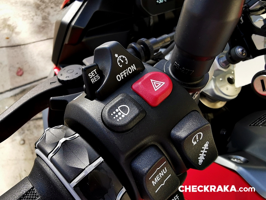 ระบบโช๊คที่สามารถปรับโหมดได้ในรุ่นโช๊คไฟฟ้านั้น สังเกตได้จากกระบอกโช๊คหลังสีทองที่มี 2 ชุดคือ ตัวโช๊คอัพและชุดมอเตอร์ไฟฟ้าปรับระดับความแข็งอ่อน ด้วยการเลือกที่สวิตช์บนแฮนด์ซ้าย จากการปรับนั้นอาจไม่ค่อยรู้สึกต่างกันมากนัก เนื่องจากระบบปรับค่านี้จะเป็นแบบ Dynamic ซึ่งจะมีเซ็นเซอร์ตรวจจับและคำนวนค่าความแข็งอ่อนในแบบ "มีระยะยืดหยุ่น" ในแต่ละช่วงความหนืด จึงไม่ค่อยรับมากนัก ในการขับขี่จึงเลือกใช้แบบ "Road" เป็นหลักมากกว่า "Dynamic" ครับ