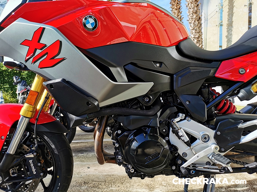 - F 900 R Sport เพิ่มโช๊คอัพไฟฟ้า โช๊คหน้าสีทอง ระบบเบรก ABS Pro ราคา 520,000 บาท สำหรับสี Hockenheim SilverMetallic / Racing Red (Sport Style) (รวมภาษีมูลค่าเพิ่ม)