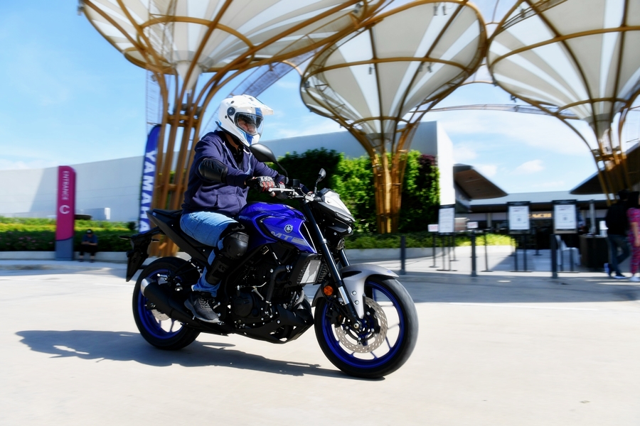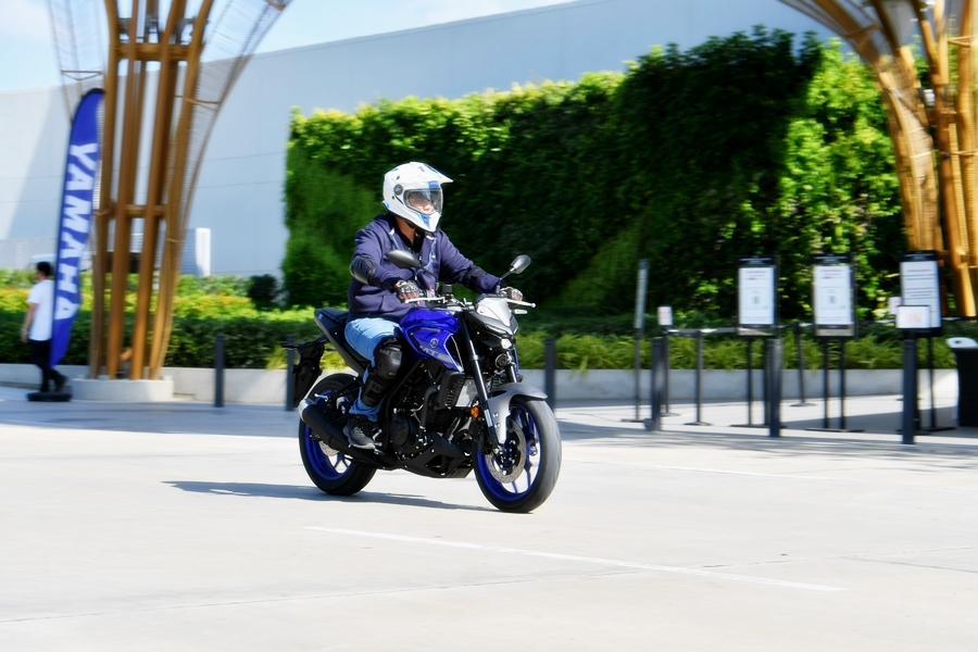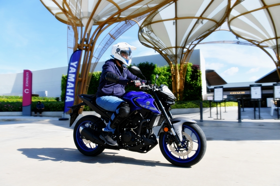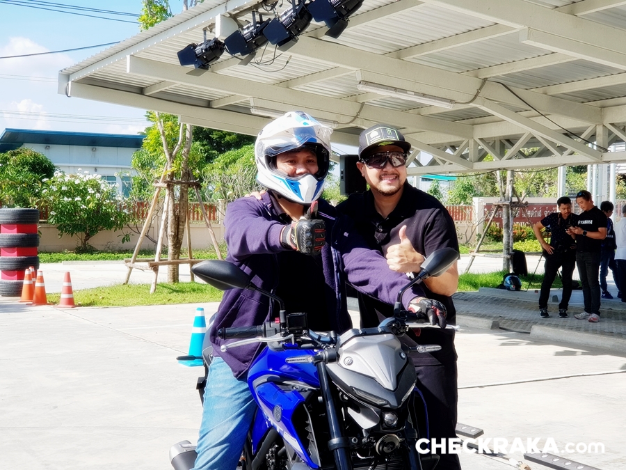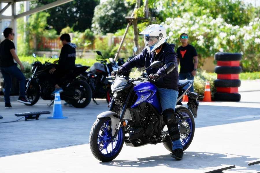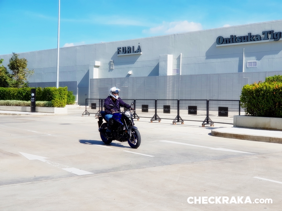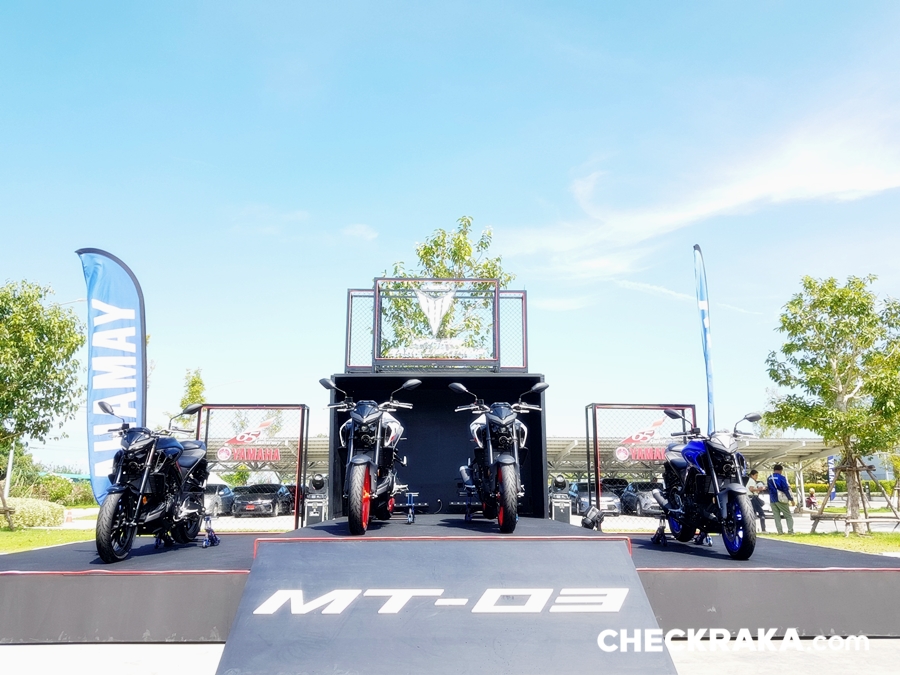 Yamaha MT-03 นับเป็นการลองระยะสั้น ในพื้นที่ของ สยามพรีเมี่ยมเอ้าท์เล็ต แบงค์คอก ลาดกระบัง ซึ่งมีระยะทาง 1.4 กม.ต่อ 1 รอบ ขับขี่ทั้งหมด 4 - 5 รอบ พร้อมลูกระนาดอีก 9 ลูก เพื่อลองท่านั่งการขับขี่ใหม่ ความนุ่มหนึบของช่วงล่างและความคล่องตัว พร้อมด้วยทีมงานยามาฮ่าที่คอยช่วยดูแลความสะดวกและความปลอดภัยตลอดการขับขี่