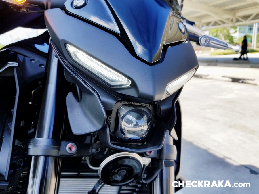 Yamaha MT-03 Dark Lightning ใหม่ ปรับโฉมไมเนอร์เชนจ์ ในหลายจุดเริ่มที่ไฟหน้า ชุดไฟหน้า Full LED ดีไซน์ Twin-eye และไฟหน้า Mono Focus และไฟส่องเวลากลางวันแบบเส้น 2 ฝั่ง