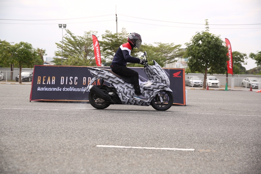 การทดสอบจัดที่ศูนย์ฝึกขับขี่ปลอดภัยฮอนด้า มีสื่อมวลชนเข้าร่วมมากกว่า 30 ราย โดยแบ่งเป็นกลุ่มตามรอบเวลา แต่ละกลุ่มมี 6 สื่อ เพื่อรักษาระยะห่างตามมาตรการความปลอดภัยห่างไกลโควิด-19 รถพรางของ