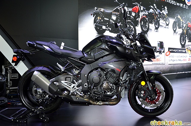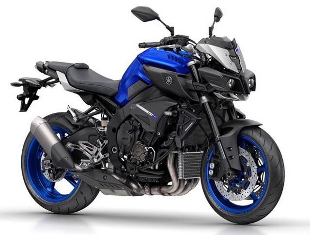 YAMAHA MT-10 บิ๊กไบค์ Naked รุ่นใหญ่สุดของซีรีส์ เผยโฉมในงาน EICMA 2015 อิตาลี พร้อมโชว์ให้แฟนยามาฮ่า และเหล่าไบค์เกอร์ได้สัมผัสตัวจริง โดย MT-10 ใช้เครื่องยนต์ตัวเดียวกับ R1 ให้ความโหดด้านพละกำลังและรูปลักษณ์แบบ Naked ขับเคลื่อนด้วยเครื่องยนต์ครอสเพลน 4 สูบ DOHC ความจุ 998 ซีซี พลัง 160 แรงม้า ที่ 11,500 รอบต่อนาที แรงบิดสุงสุด 111 นิวตันเมตร ที่ 9,000 รอบต่อนาที พร้อมปรับแต่งให้มีกำลังมากขึ้นในช่วงรอบต่ำ-กลาง ส่งกำลังผ่านเกียร์ 6 สปีด ยางหน้าขนาด 120/70 ZR17 ยางหลัง 190/55 ZR17 ถังน้ำมัน 17 ลิตร น้ำหนักตัวรวม 210 กิโลกรัม และฐานล้อสั้น 1,400 มม. ให้ความคล่องตัวสูง งานนี้รอยามาฮ่าเปิดราคาให้ได้เร้าใจกันอีกรุ่น