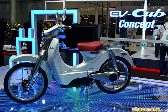 HONDA EV-Cub Concept จักรยานยนต์ไฟฟ้ากำเนิดขึ้นตามแนวคิดลดมลภาวะให้กับโลก ใช้เทคโนโลยีล้ำสมัยผสานกับรูปทรงอันแสนคลาสสิกของรถตระกูล Cub ขับเคลื่อนด้วยมอเตอร์ไฟฟ้า ใช้พลังงานจากแบตเตอรี่ลิเธียมไอออนขนาดกะทัดรัด ถอดได้ มีน้ำหนักเบาแต่เก็บพลังงานได้มากกว่าแบตเตอรี่แบบตะกั่ว 4 เท่า และชาร์จไฟในบ้านได้