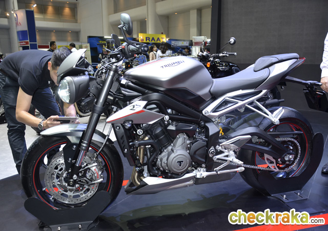 ALL-NEW STREET TRIPLE RS (สตรีท ทริปเปิล อาร์เอส) รถมอเตอร์ไซค์ตระกูล Naked โมเดลล่าสุด พร้อมเผยโฉมเป็นที่แรกก่อนใครในเอเชียแปซิฟิก โดย สตรีท ทริปเปิล อาร์เอส โฉมใหม่ล่าสุดนี้ มาพร้อมเครื่องยนต์บล็อกใหม่ขนาด 765 ซีซี แบบ 3 สูบเรียงอันเป็นเอกลักษณ์ ซึ่งให้แรงม้าสูงสุดที่ 123 PS ที่ 11,700 รอบต่อนาที และให้แรงบิดสูงสุดที่ 77 นิวตันเมตร ที่ 10,800 รอบต่อนาที พร้อมขับเคลื่อนด้วยระบบเกียร์ 6 สปีด ด้านรูปลักษณ์มีการปรับใหม่ แต่ยังคงความโดดเด่นทันสมัยตามสไตล์เฉพาะของรุ่น อีกทั้งเพิ่มการควบคุมรถที่แม่นยำยิ่งขึ้นเพื่อการขับขี่ที่มั่งคงยิ่งกว่าเดิม โดยมาพร้อม 2 โทนสีสุดเร้าใจ ได้แก่ สี Matt Silver Ice และสี Phantom Black (Metallic) สุดพิเศษ!! Triumph Street Triple RS ราคา 530,000 บาท พร้อมส่งมอบในเดือนเมษายน สำหรับสาวกพร้อมเปิดจองและเป็นเจ้าของได้ทันที ภายในงานมอเตอร์โชว์ ครั้งที่ 38 ณ บูธไทรอัมพ์ M 8 อาคารชาเลนเจอร์ ฮอลล์ อิมแพค เมืองทองธานี ระหว่างวันที่ 29 มีนาคม - 9 เมษายน 2560 เท่านั้น