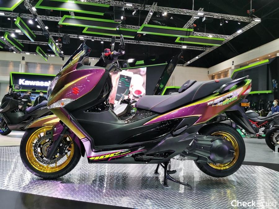 ซูซูกิ BURGMAN 400 สปอร์ตสกู๊ตเตอร์ เมด อิน เจแปน เบิร์กแมน 400 เวอร์ชันปี 2020 จากญี่ปุ่นนำเข้าโดยซูซูกิ ยังคงได้รับความนิยมข้ามปีอย่างต่อเนื่อง ด้วยขุมพลังขับเคลื่อนด้วยเครื่องยนต์ 1 สูบ 399 ซีซี DOHC ระบายความร้อนด้วยน้ำ ให้กำลังสูงสุด 31 แรงม้า ที่ 6,300 รอบต่อนาที แรงบิดสูงสุด 36 นิวตันเมตรที่ 4,800 รอบต่อนาที ระยะสูงเบาะ 755 มม. น้ำหนักตัวรถอยู่ที่ 215 กิโลกรัม