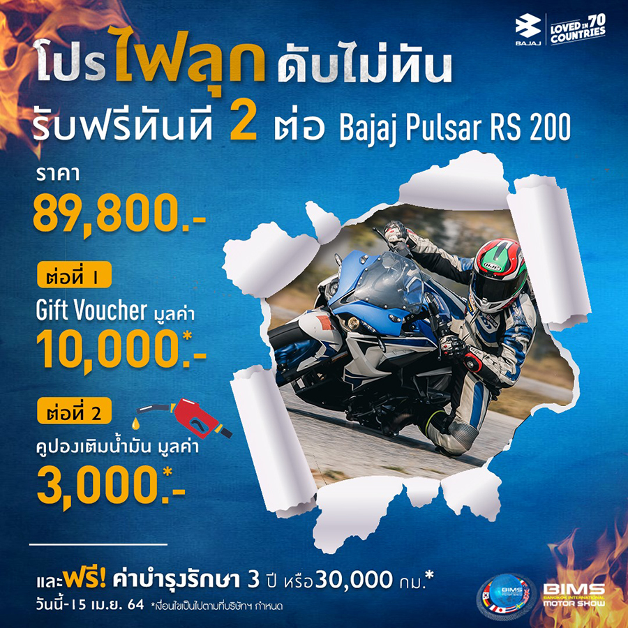 1. สำหรับ Bajaj Pulsar NS 160 และ NS 200 สุดพิเศษรับฟรีทันที 3 ต่อ รวมมูลค่ากว่า 24,000 บาท*