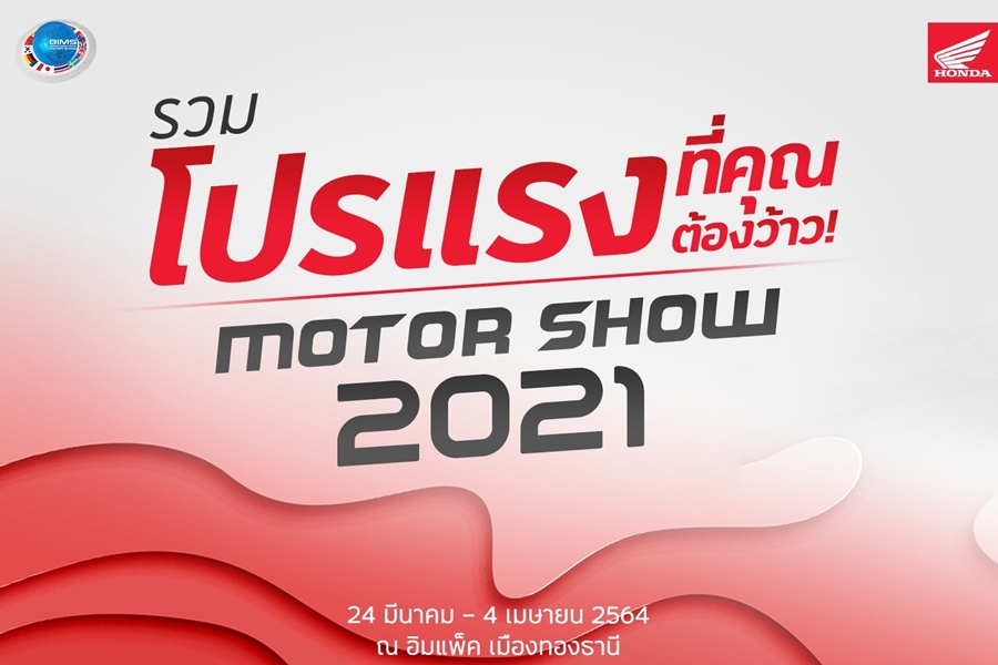 งานใหญ่แห่งปี เดินทางมาครบวาระอีกครั้ง สำหรับปีนี้ บริษัทกรังด์ปรีซ์ อินเตอร์เนชั่นแนล จำกัด (มหาชน) ผู้จัดงานมอเตอร์โชว์ 2021 (Motor Show 2021) ปีที่ 42 รถจักรยานยนต์แต่ละค่ายต่างมาร่วมงานและงัดแคมเปญเด็ด โปรโมชั่นเด่น ออกมามากมาย พร้อมข้อเสนอพิเศษ ที่พร้อมให้ผู้เข้าชมงาน ตัดสินใจควักกระเป๋าและเป็นเจ้าของรถจักรยานยนต์ใหม่ได้ง่ายขึ้น และปีนี้จะมีโปรโมชั่นอะไรเด็ดๆ บ้าง ทีมงาน เช็คราคา.คอม เลขคัดโปรเด็ดของแต่ละค่ายมาฝากกัน ซึ่งงาน Motor Show จะจัดขึ้น ตั้งแต่วันที่ 24 มีนาคม - 4 เมษายน 2564