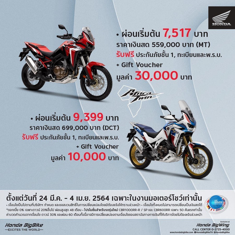 ขณะที่กลุ่มรถใหญ่อย่างบิ๊กไบค์ ทั้งประเภทรถนำเข้าและผลิตในประเทศ เตรียมมอบข้อเสนอสุดพิเศษ ฟรี! ประกันภัยชั้น 1 และทะเบียน + พ.ร.บ. พร้อมดอกเบี้ยอัตราพิเศษในรถแต่ละรุ่น เท่านั้นยังไม่พอ ยังได้รับฟรี! Gift Voucher มูลค่าสูงสุดถึง 60,000 บาท (เฉพาะรุ่นที่ร่วมรายการ)