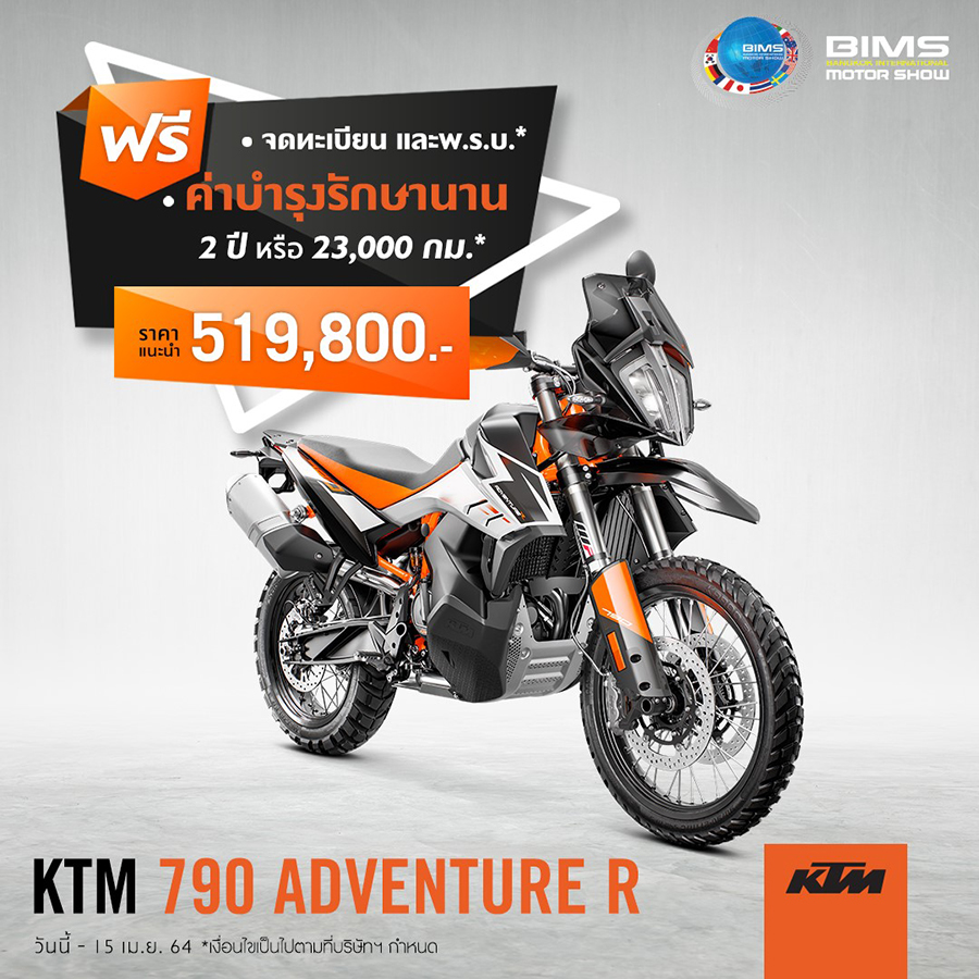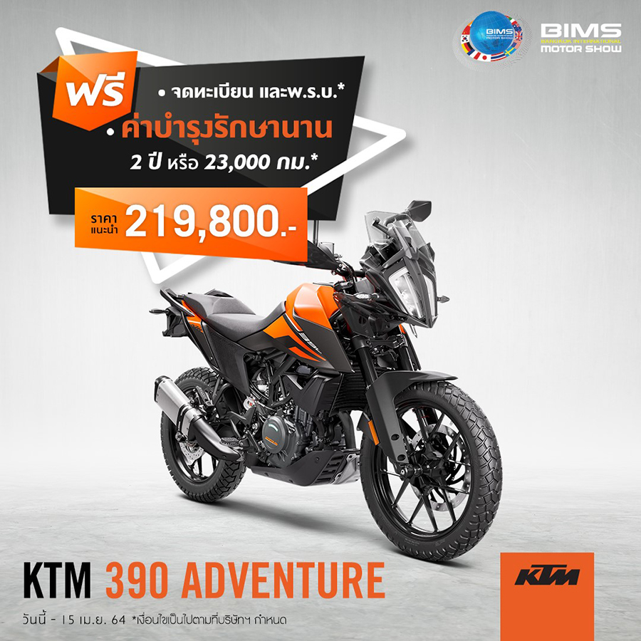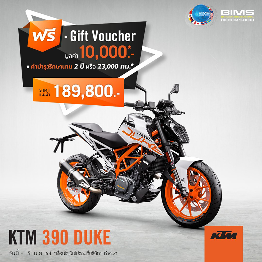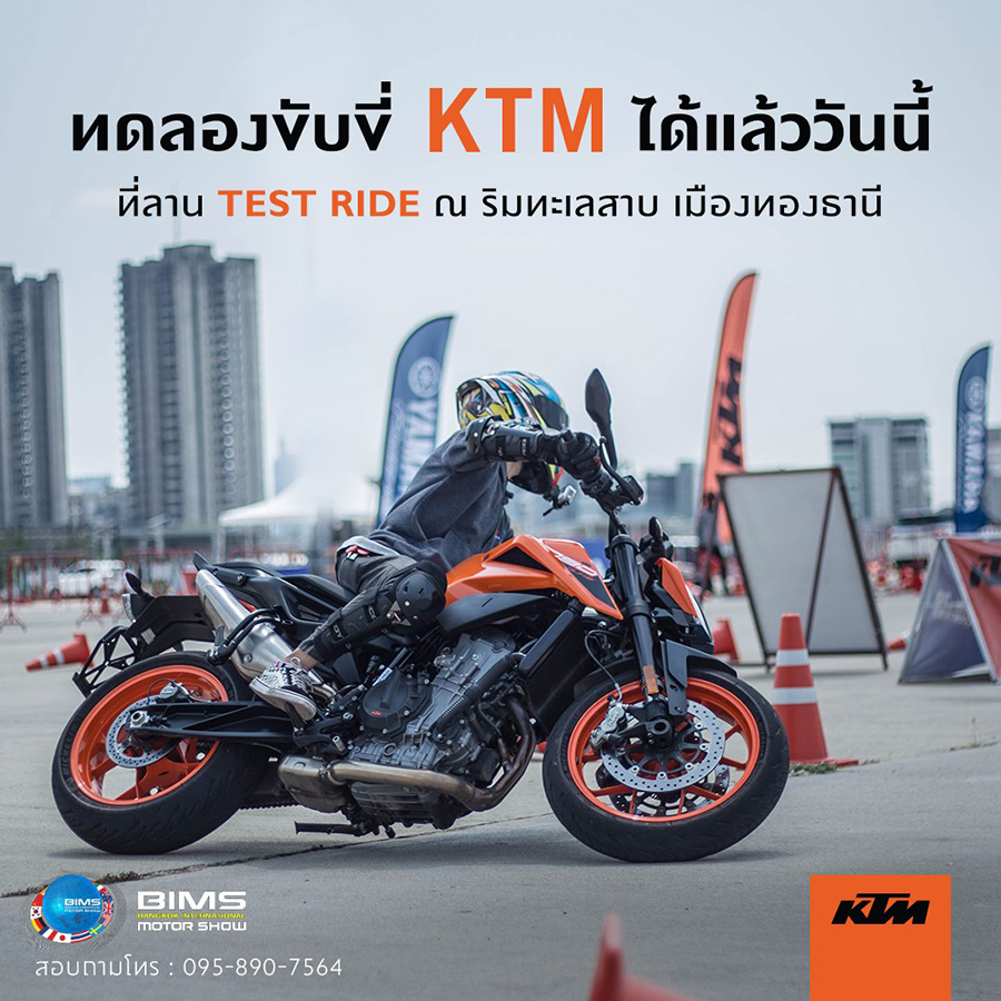 ทดลองขับขี่ KTM ได้แล้ววันนี้ ที่ลาน Test Ride ณ ริมทะเลสาบเมืองทองธานี เวลา 12:00-18:00 น. วันนี้ - 4 เมษายน 2564 พร้อมโปรโมชั่นต้อนรับ Motor Show 2021 Gift Voucher 10,000 บาท*(เฉพาะรุ่นที่กำหนด) ทุกรุ่นฟรี ค่าบำรุงรักษา นาน 2 ปี หรือ 23,000 กม.* และมี Warranty 2 ปี ไม่จำกัดระยะทาง