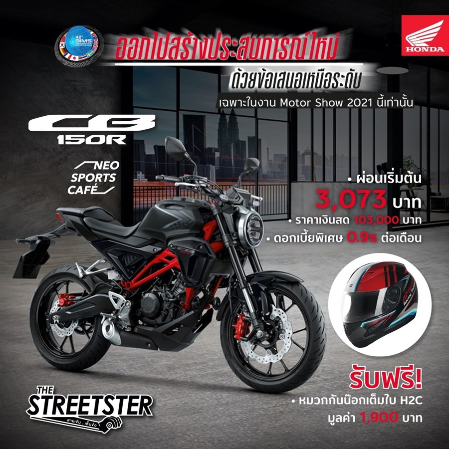 รถจักรยานยนต์ฮอนด้า ส่งโปรโมชั่นแรง! พร้อมตอบรับทุกไลฟ์สไตล์การขับขี่ เฉพาะผู้ที่จองและออกรถจักรยานยนต์ฮอนด้า ที่ร่วมรายการภายในงาน Motor Show 2021 นี้เท่านั้น!!