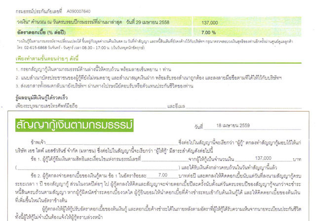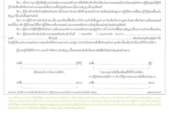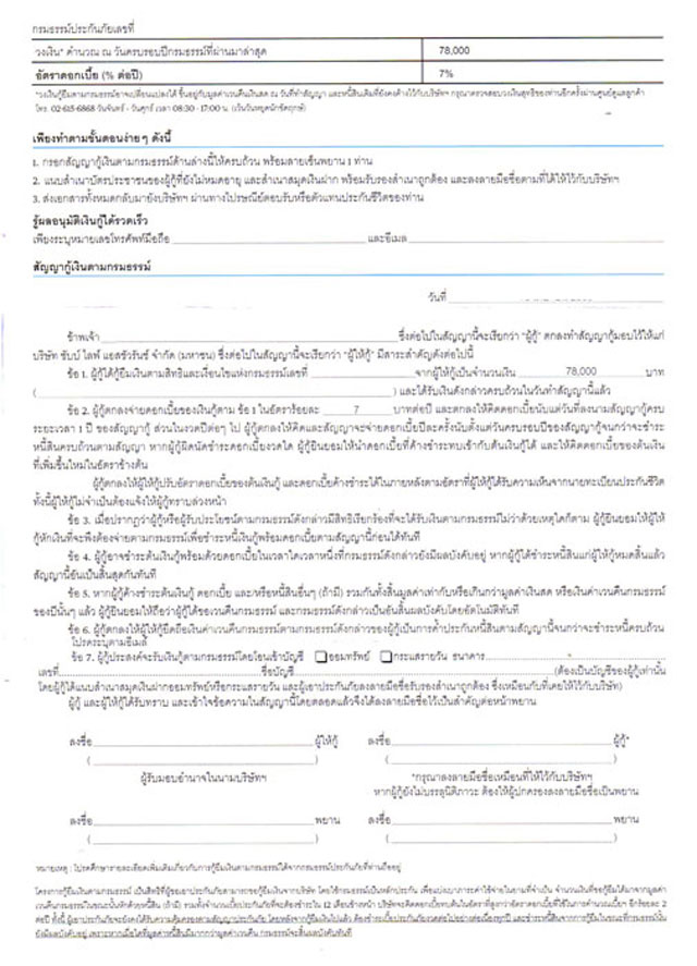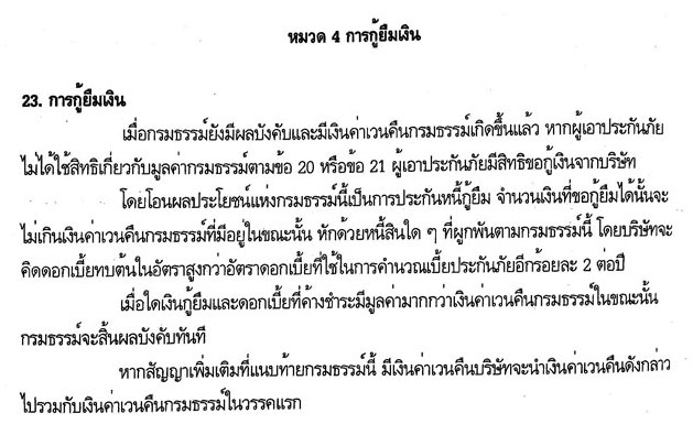 ตัวอย่างสัญญากู้เงินตามกรมธรรม์