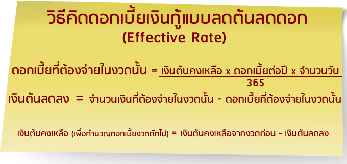 การคิดดอกเบี้ยเงินกู้แบบลดต้นลดดอก (Effective Rate)