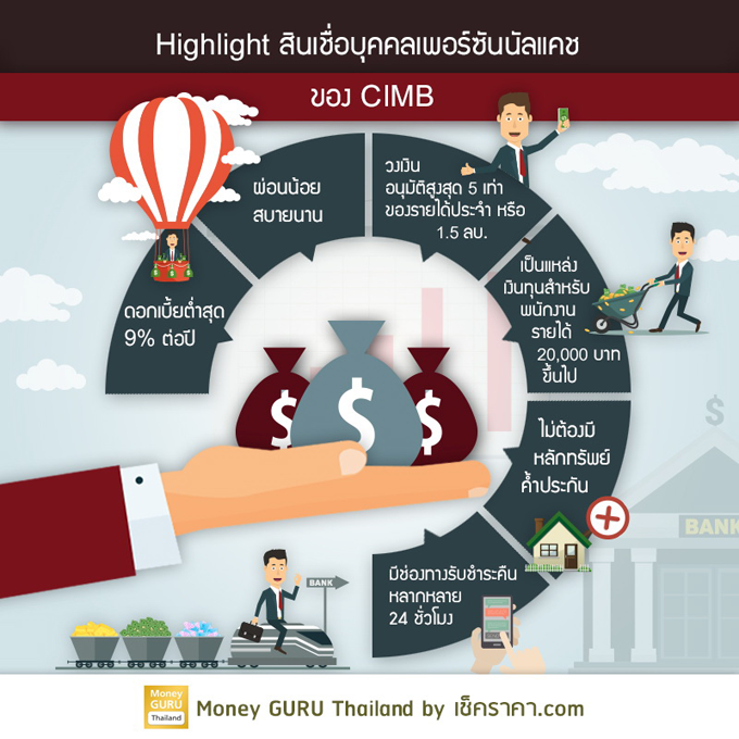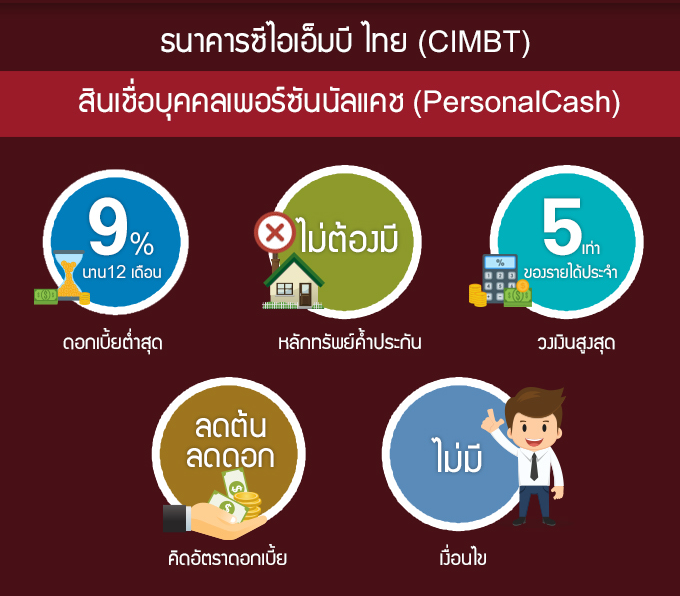 "สินเชื่อบุคคลเพอร์ซันนัลแคช (Personal Cash)" ธนาคารซีไอเอ็มบี ไทย ที่นำเสนอจุดเด่นเรื่องดอกเบี้ยที่ต่ำมาก ในระยะเวลาผ่อนเดียวกันกับแบงก์อื่น ซึ่งให้อยู่ที่