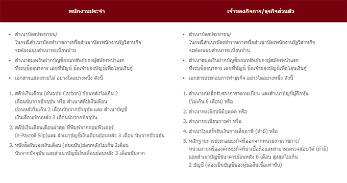 - รายได้ประจำเฉลี่ย 15,000 บาท/เดือนขึ้นไป