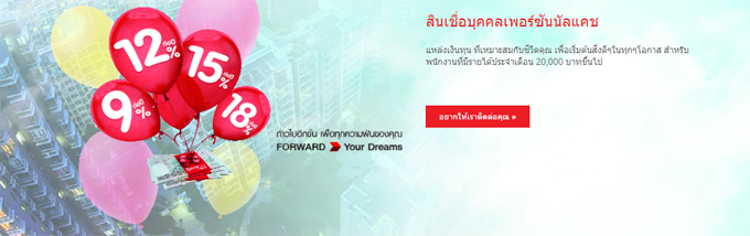 | สินเชื่อบุคคลเพอร์ซันนัลแคช (Personal Cash) | - ดอกเบี้ยต่ำ ตลอดอายุสัญญา นานถึง 12 เดือน